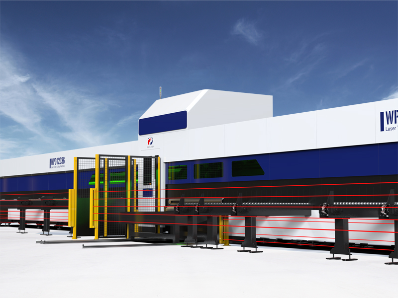Laserový řezací stroj na trubky řady WPC je určen pro řezání těžkých trubek. Používá přizpůsobené velké ústí a boční sklíčidlo s vysokou nosností a maximální nosností 1,2 tuny. Stroj je standardně vybaven poloautomatickým systémem nakládání. Nakládací podpěra je vybavena úchytem s velkou upínací silou pro zajištění centrování nakládané trubky. Nakládací strana je podepřena servomotorem řízenou plovoucí podpěrou a vykládací strana je podepřena servomotorem řízenou plochou plovoucí podpěrou. Funkce zkoseného řezání je volitelná. Splňuje konstrukční normy CE/UL pro Evropu a USA, plně utěsněný řezný prostor s trojitým bezpečnostním zámkem pro zajištění absolutní bezpečnosti pro elektromechanické a laserové obrábění.